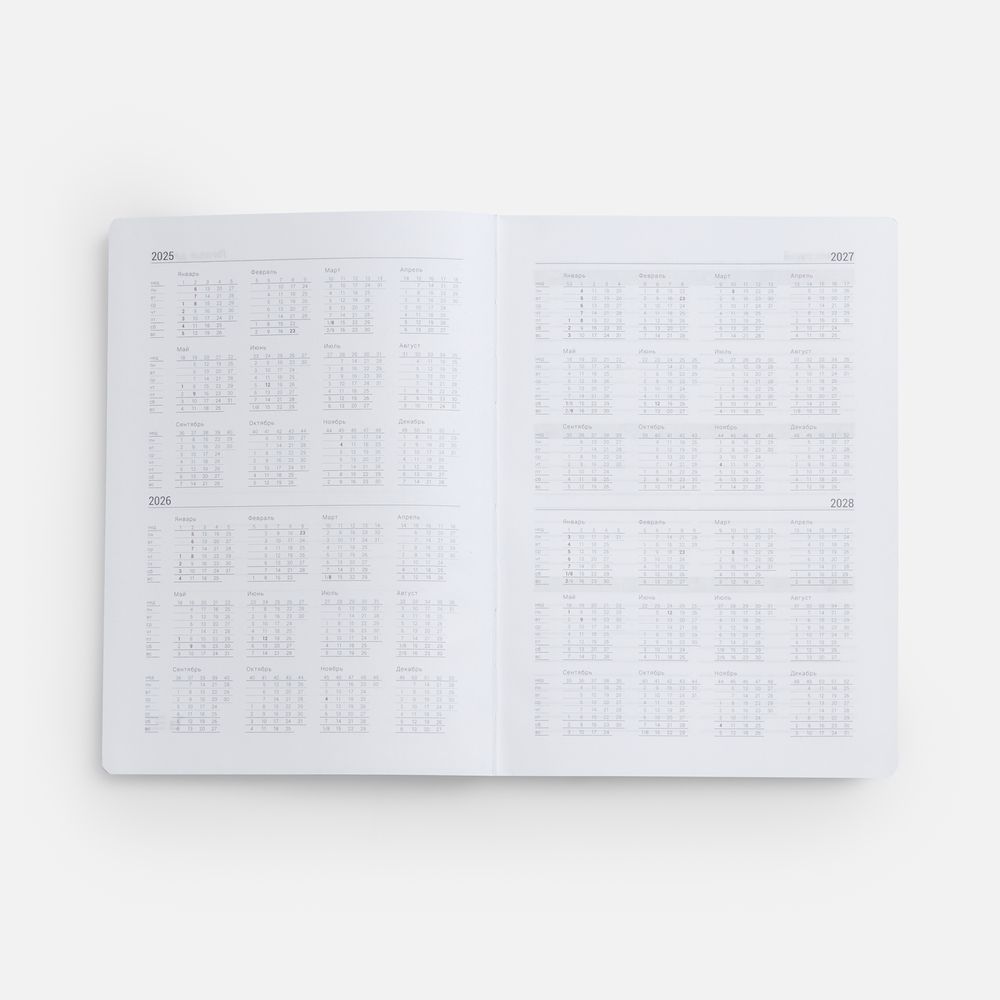 Ежедневник с твердой обложкой, выполнен из материала Latte, серый СС, обрез серого цвета, дополнен резинкой и ляссе серого цвета.