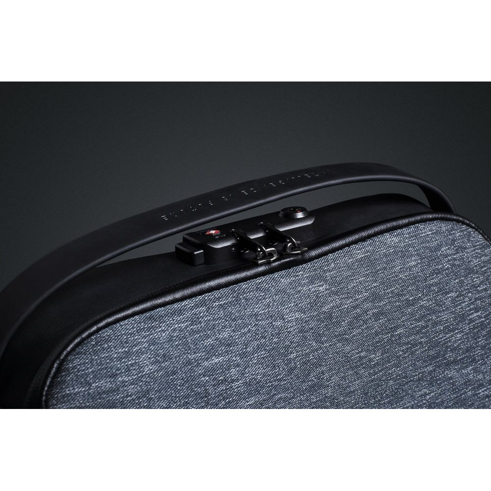 В конструкции рюкзака все продумано до мелочей: от комбинации высокопрочных, устойчивых к порезам и трению водоотталкивающих материалов до специального кармана для аккумулятора, в который выведен USB-кабель, соединенный с портом на внешней стороне рюкзака для легкого подключения к смартфону. Рюкзак закрывается на водонепроницаемую молнию, которую можно зафиксировать с помощью кодового замка.