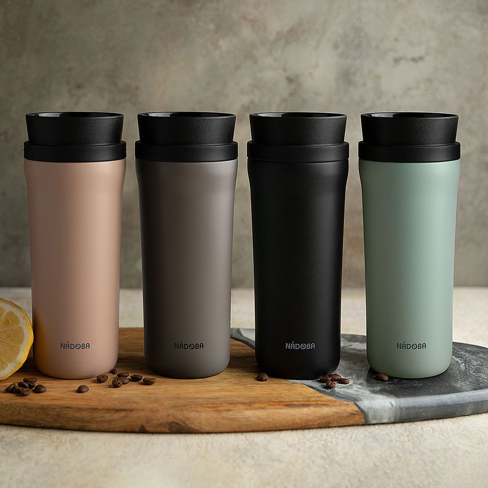 • Герметичная завинчивающаяся крышка с силиконовым уплотнителем и питьевой системой с клапаном — технология 360° позволяет одним нажатием открывать кружку и пить с любой стороны