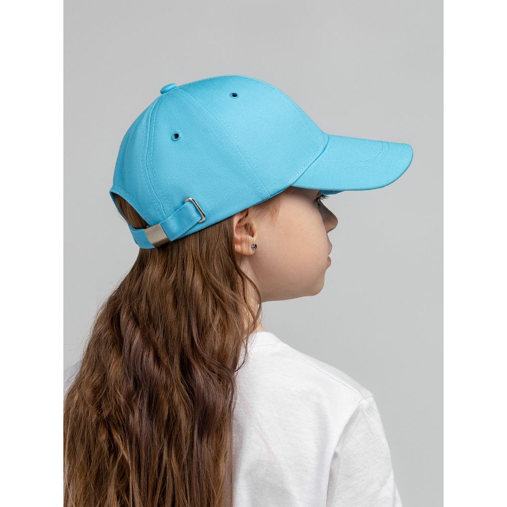 Детская модель с шестью клиньями без шва на лбу. Металлические люверсы покрашены в тон изделия. Сзади металлическая застежка для регулировки размера.