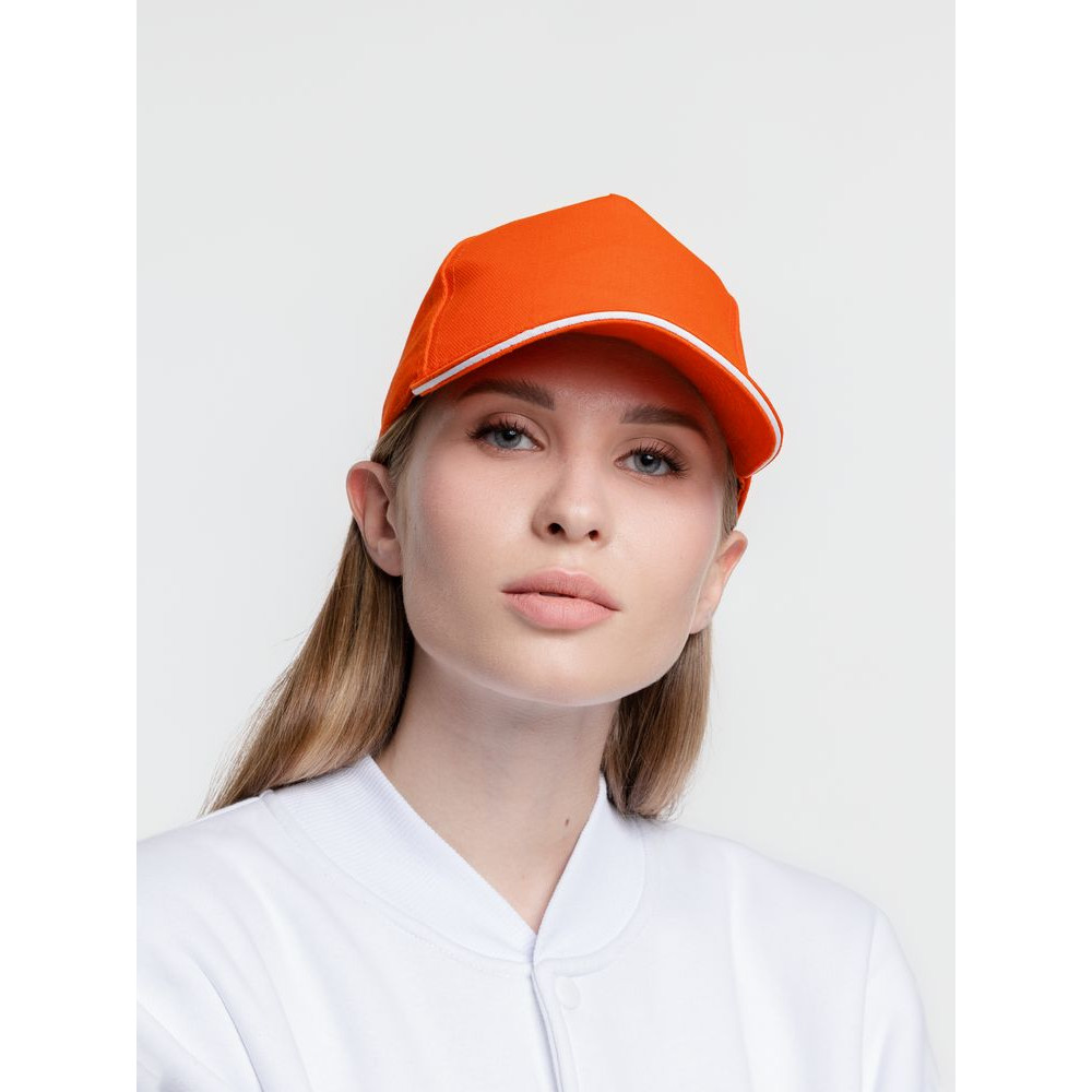 Бейсболка Classic, оранжевая с белым кантом