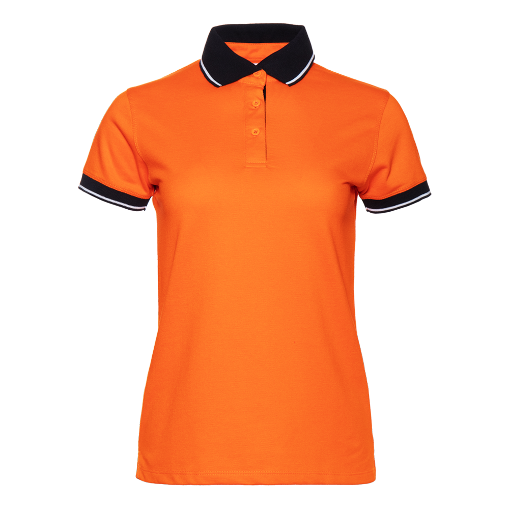 Женская рубашка поло приталенного силуэта с контрастным отложным воротником и манжетом, втачным коротким рукавом и застежку на пуговицы. Асимметричный крой гарантирует свободу движения и защиту спины от продувания ветром.