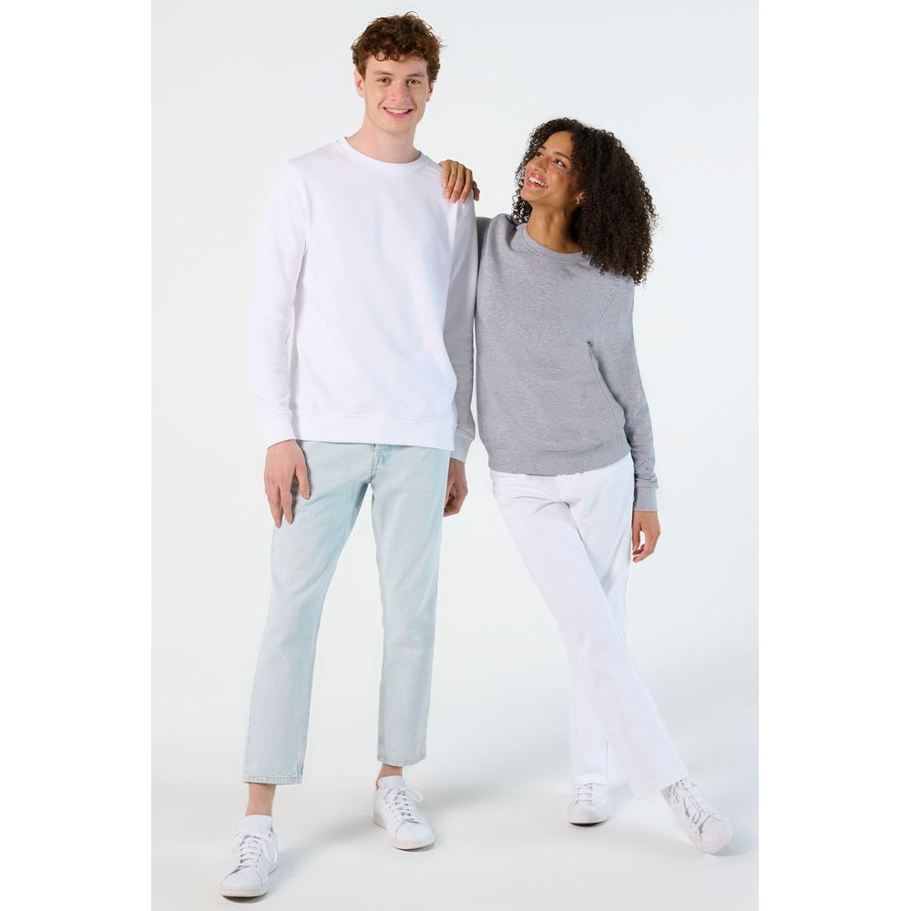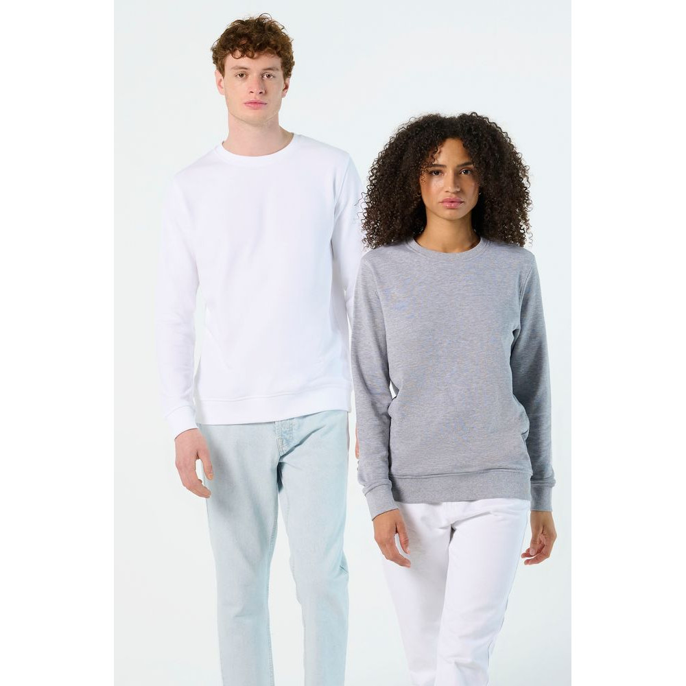 Свитшот унисекс из органического хлопка с круглым вырезом и втачным рукавом. Лейбл производителя в боковом шве изнутри, в шве горловины — только бирка с размером, что позволяет вам нанести свой логотип.