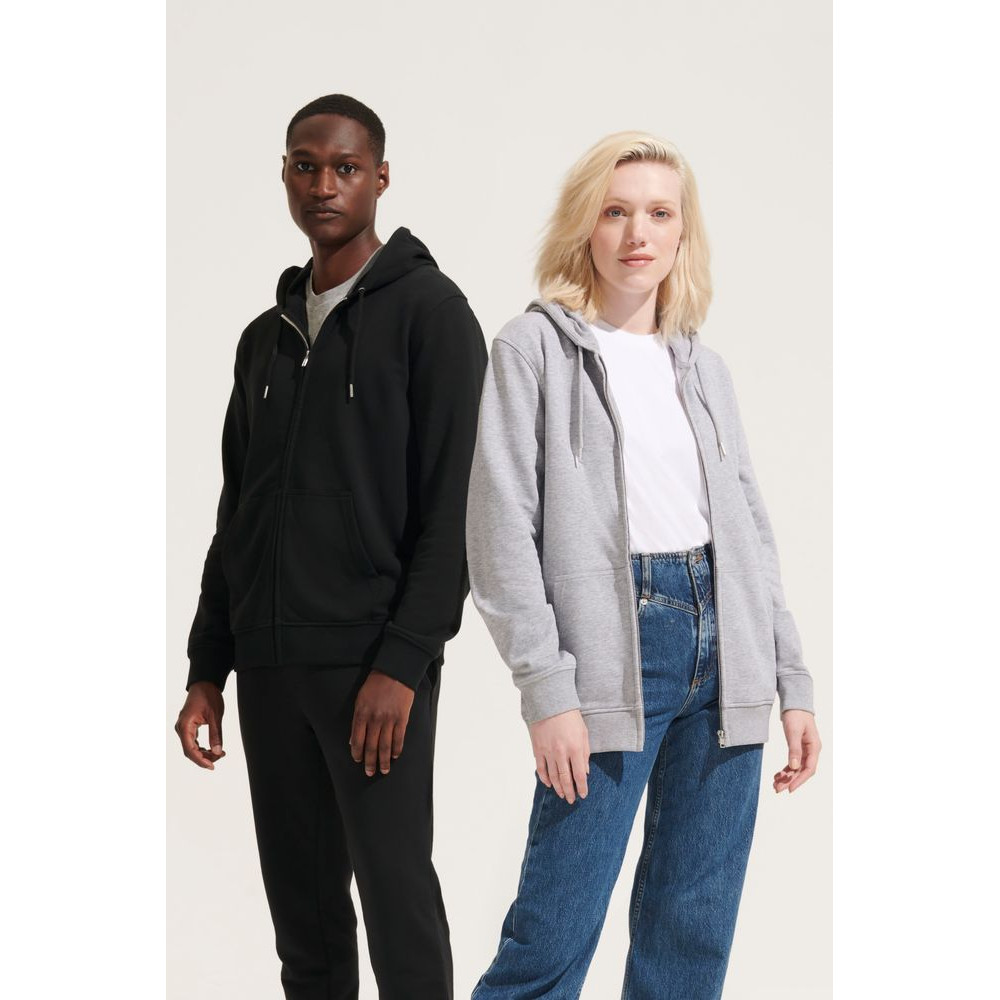 Базовая толстовка унисекс на молнии выполнена из органического хлопка и переработанного полиэстера.