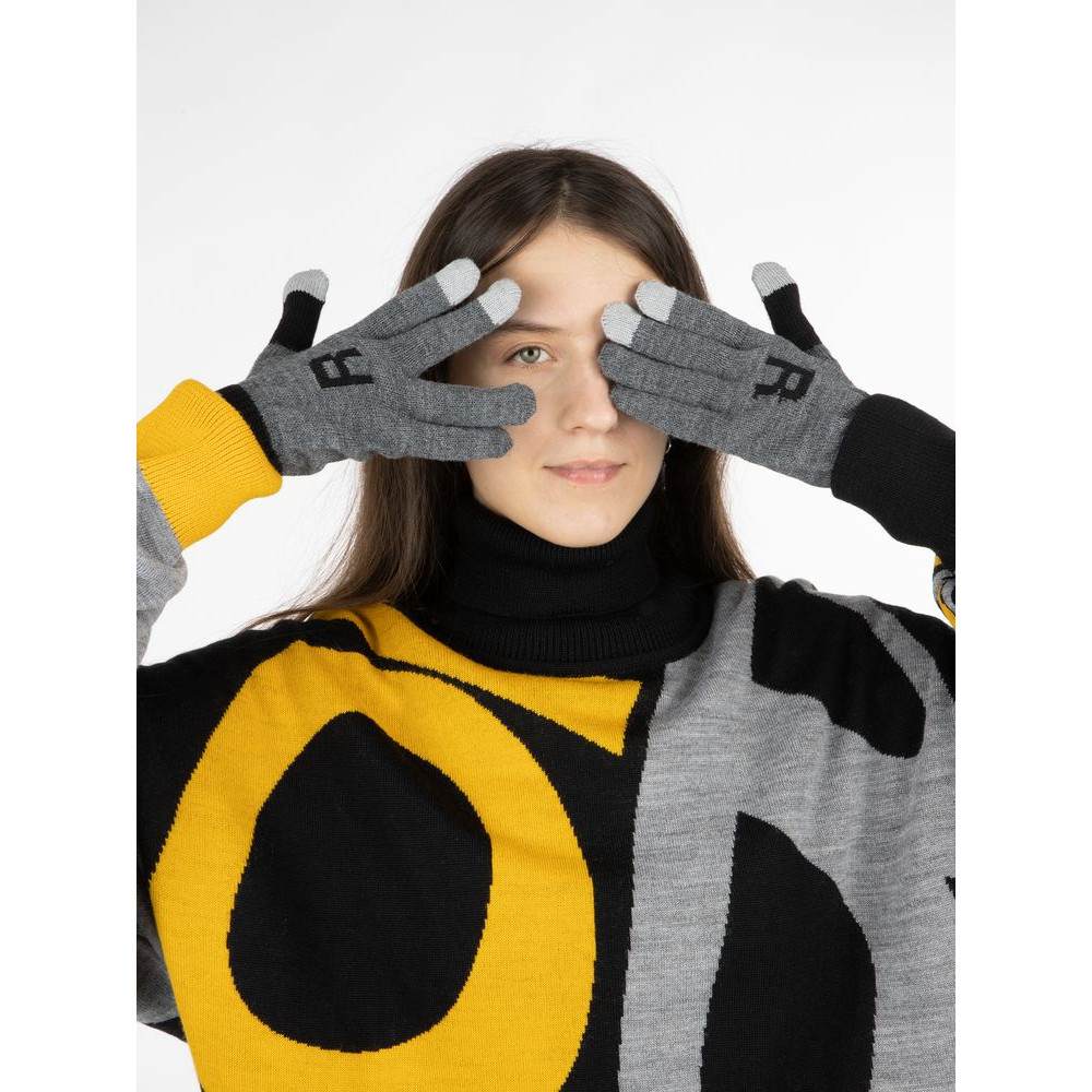 Модель: цельновывязанные бесшовные перчатки с эластичной манжетой и жаккардовым узором в 2-3 цвета. Три пальца: средний, указательный, большой — вяжутся с использованием токопроводящей нити. Манжета может быть полосатой (только горизонтальные полосы 1-2 цветов, без узора и логотипа).