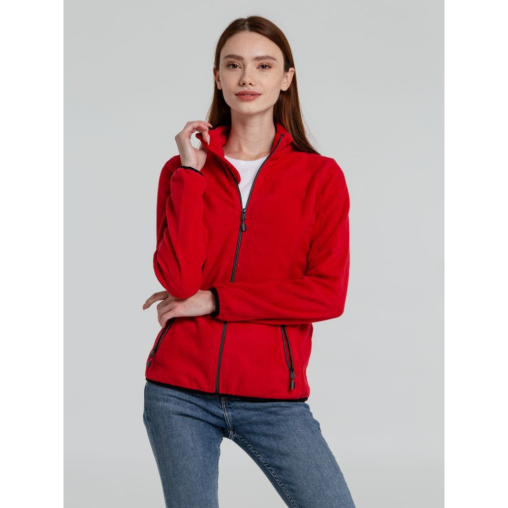 Женская флисовая толстовка с застежкой-молнией и двумя передними карманами на молниях. Декоративные плоские швы. Есть возможность подобрать цвет пуллеров для максимального соответствия визуальному стилю фирмы.