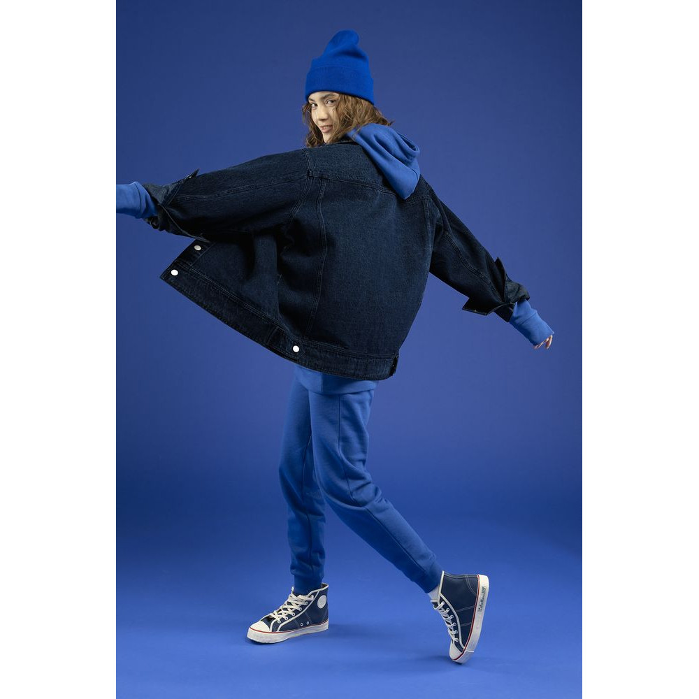 Джинсовая куртка унисекс на кнопках свободной посадки.