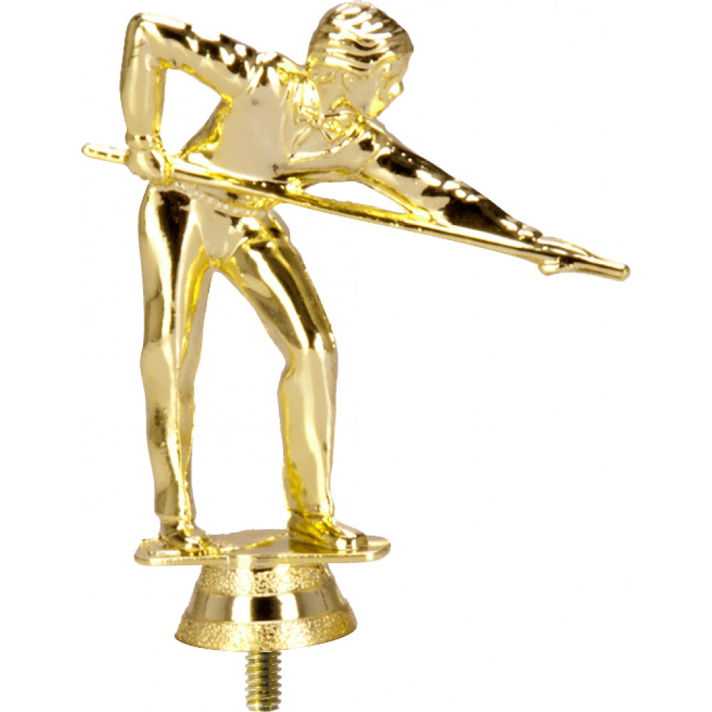 Фигурка пластиковая "Бильярд". Цвет золото. Высота 11 см. Изображен игрок, который прицеливается перед нанесением удара кием. Фигурка установлена на стеме в виде небольшого конусообразного элемента. Фигурку возможно закрепить на цоколь, постамент или кубок.