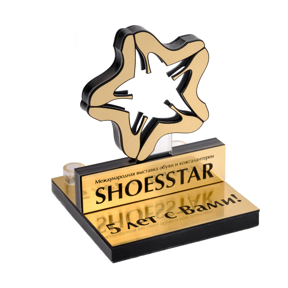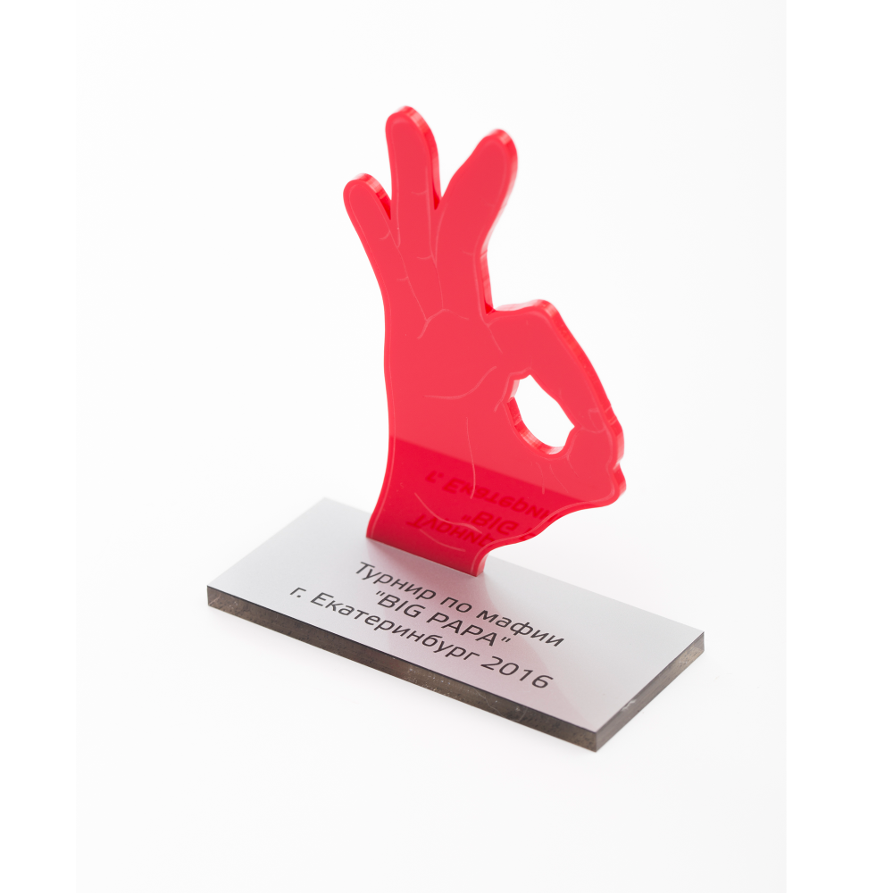 Приз состоит из основания и самой фигуры. Элементы изделия изготавливаются в два слоя - из акрилового стекла толщиной от 3 до 10 мм с последующей аппликацией пластиком толщиной 0,8, 1,6 или 3,2 мм. Цвет, размер и форма изделия могут быть любые.