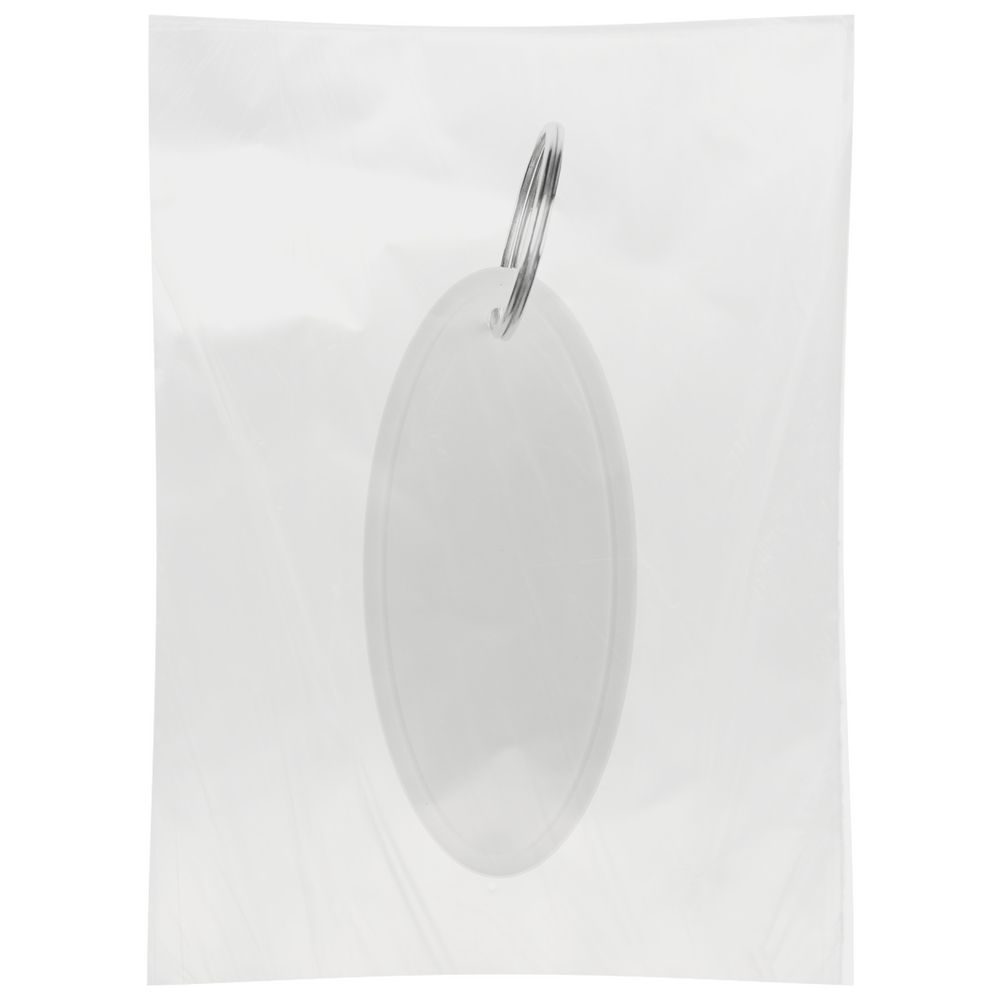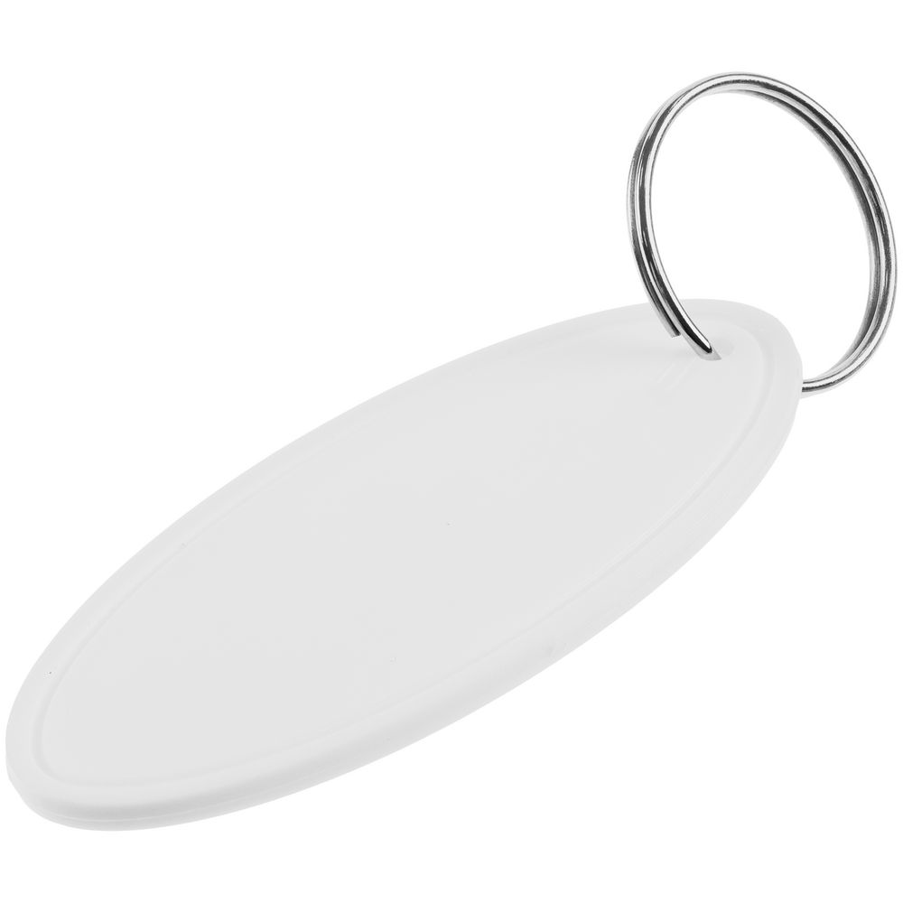 Лаконичный брелок из полипропилена с металлическим кольцом.