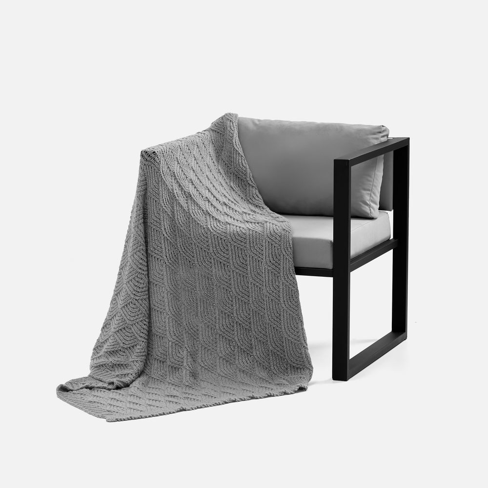 Изысканный плед с узором из закругленных ромбов станет настоящим украшением пространства. Воздушный, словно полупрозрачный, узор напоминает морские ракушки, навевая мысли о приятном курортном отдыхе и полной безмятежности.