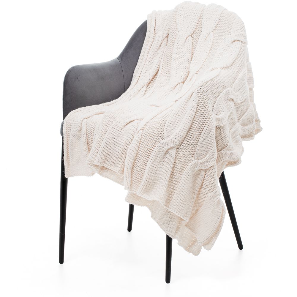 Snefald — объемный плед благородного оттенка с орнаментом из крупных кос. Классический узор придает изделию элегантный вид, изысканности добавляет и цветовая гамма.