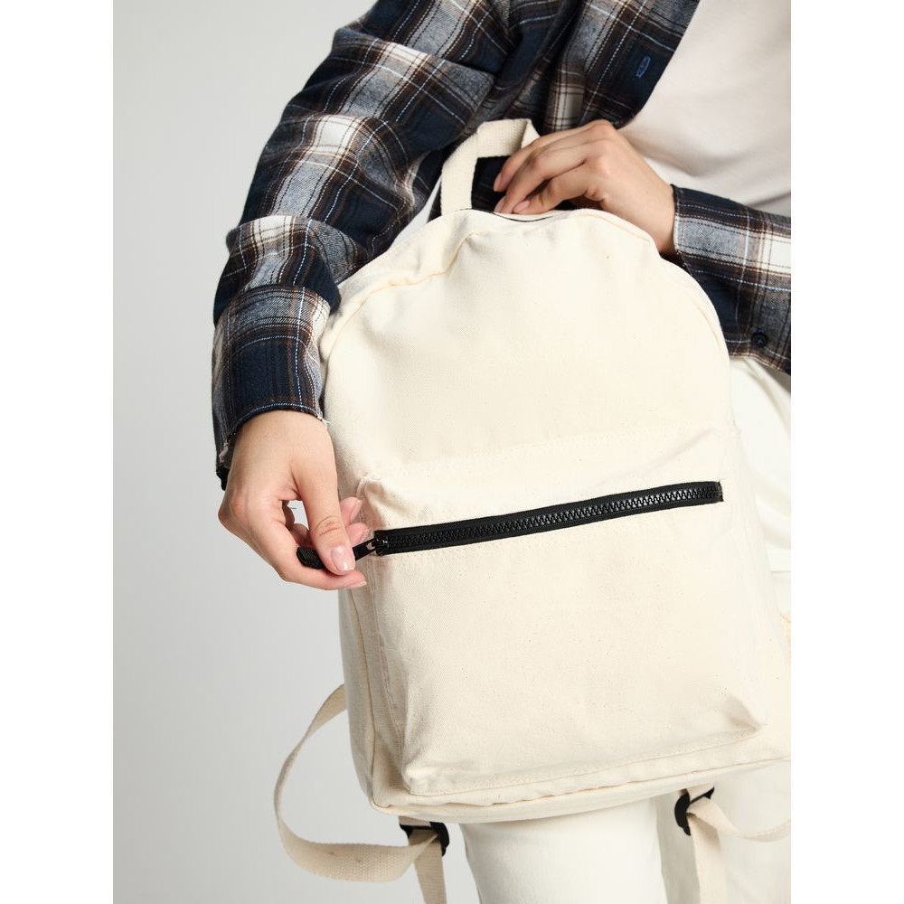Легкий рюкзак в экостиле — из плотного неокрашенного хлопка с контрастными деталями.