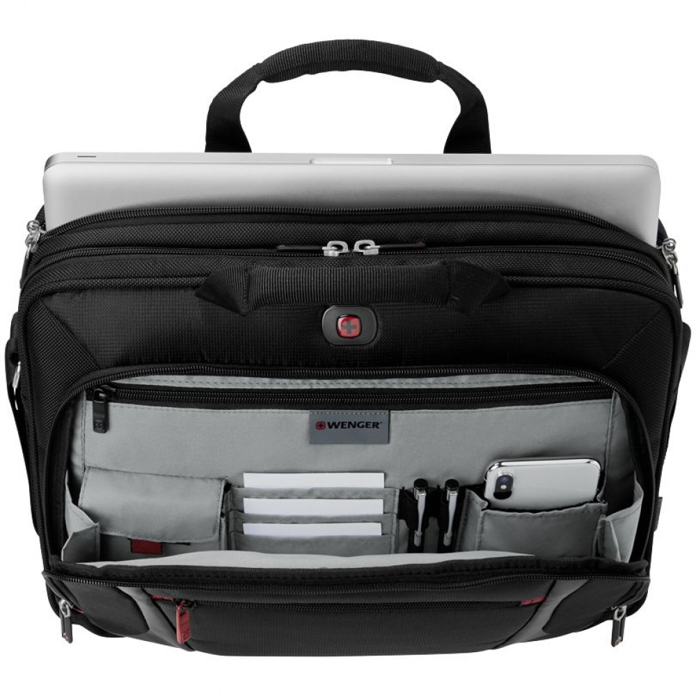 • Отделение с карманом-органайзером включает ключницу, многочисленные кармашки для пишущих принадлежностей, документов и карты памяти, карман для телефона