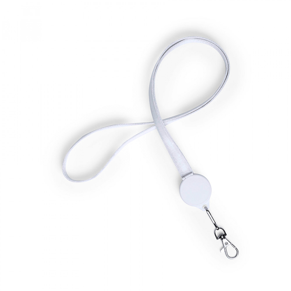Провод белого цвета с оплеткой из прочного полиэстера. Длина 52см, металлический карабин.