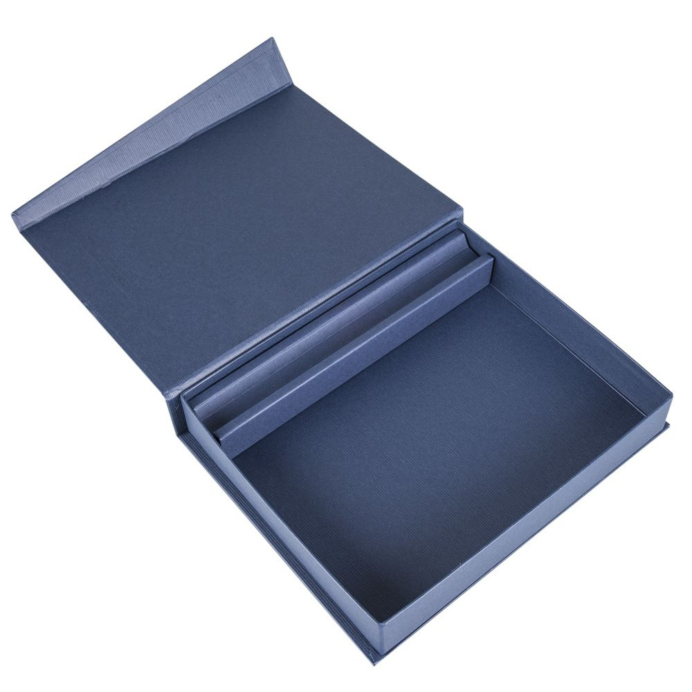 Коробка с клапаном на магните, выполнена из переплетного картона, кашированного бумагой Malmero.