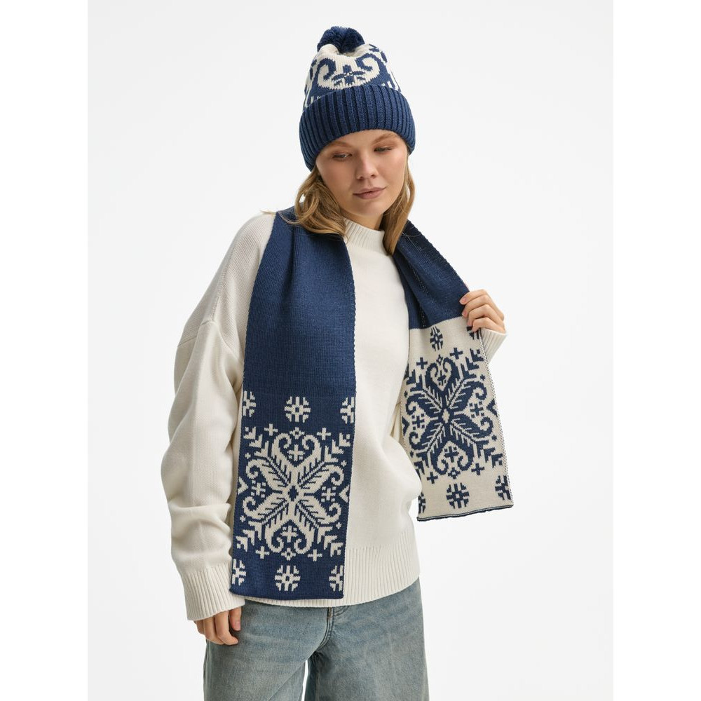 Шарф Wintertude выполнен из качественной полушерстяной пряжи в двух гармоничных цветах, которые подчеркивают сложный жаккардовый рисунок. Двухслойная структура обеспечивает дополнительное тепло и объем, сохраняя при этом легкость и мягкость.