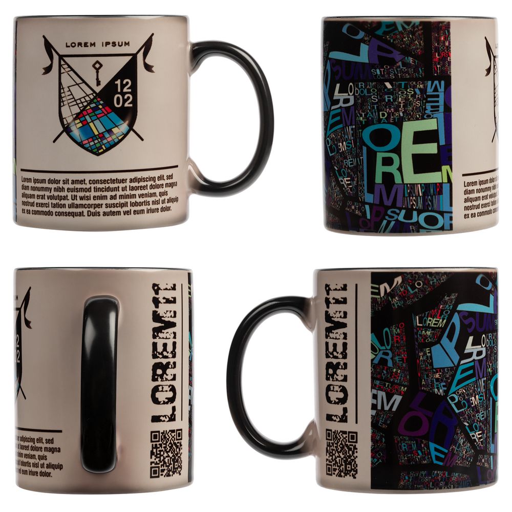 Цветное покрытие создает эффект «цветного стекла»: нанесение выглядит так, словно мы смотрим на него через цветное стекло. Используйте более светлые краски, если хотите, чтобы изображение проглядывало сквозь цветной слой как можно меньше. Лучше всего краски нанесения перекрываются черным цветом, поэтому менее всего изображение будет заметно на черной кружке. Выполнить визуально незаметное нанесение технически невозможно даже при использовании цветов сходных или идентичных цвету кружки.