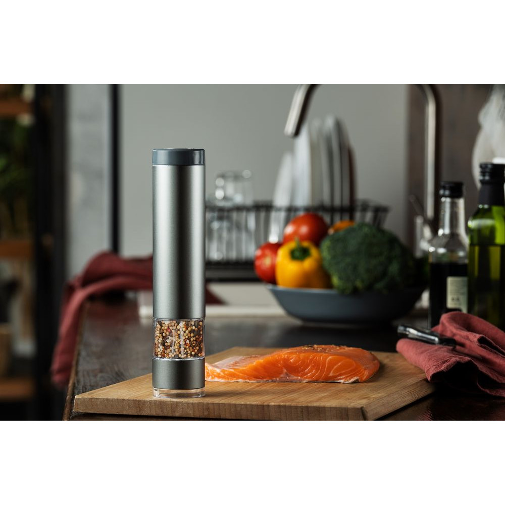 Электрическая мельница Kvarn с керамическими жерновами — это удобный способ получить свежемолотые специи нажатием одной кнопки. Электромельница поможет сохранить и раскрыть вкус натуральных приправ и создать настоящий кулинарный шедевр.Емкость отсека для специй 20 г.
