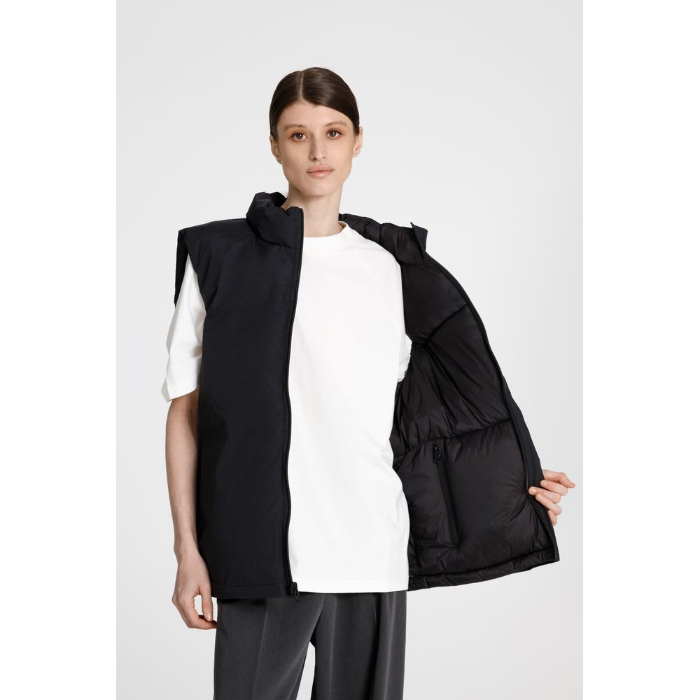 Двусторонний утепленный жилет V2 — это сразу два стильных образа в одном изделии. С одной стороны он стеганый и глянцевый, а с другой — матовый, лаконичный и уже без прострочки. Объемная и легкая модель оверсайз позволяет создать непринужденный и комфортный образ и в городе, и в путешествии.