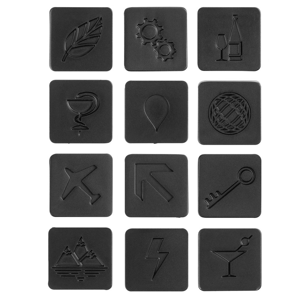 12 универсальных символов можно трактовать по-разному: например, лист может быть признанием экологичности производства, а самолет — пожеланием новых вершин. В каждую картинку легко можно вложить свой смысл — и создавать собственный уникальный корпоративный код.