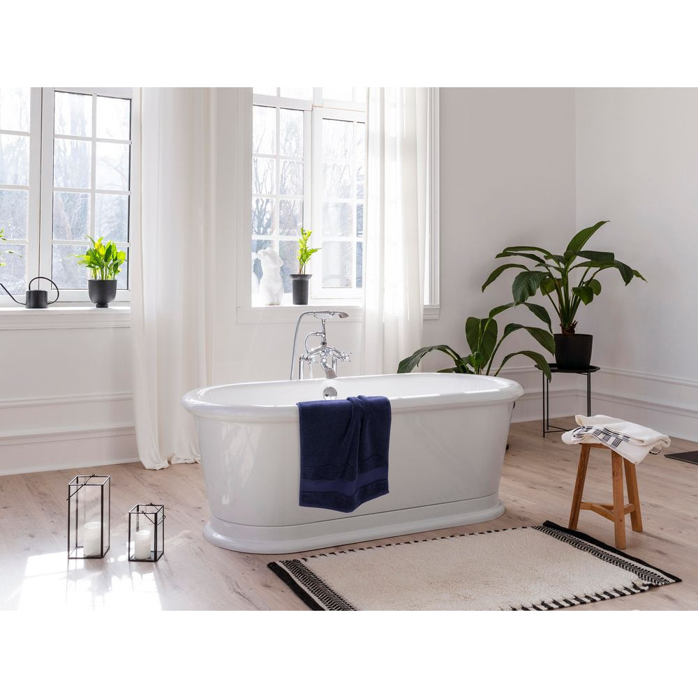 Разноуровневая махровая ткань создает объем и обеспечивает мгновенное впитывание и деликатный массажный эффект, а широкий хлопковый бордюр открывает возможности для особенной персонализации.