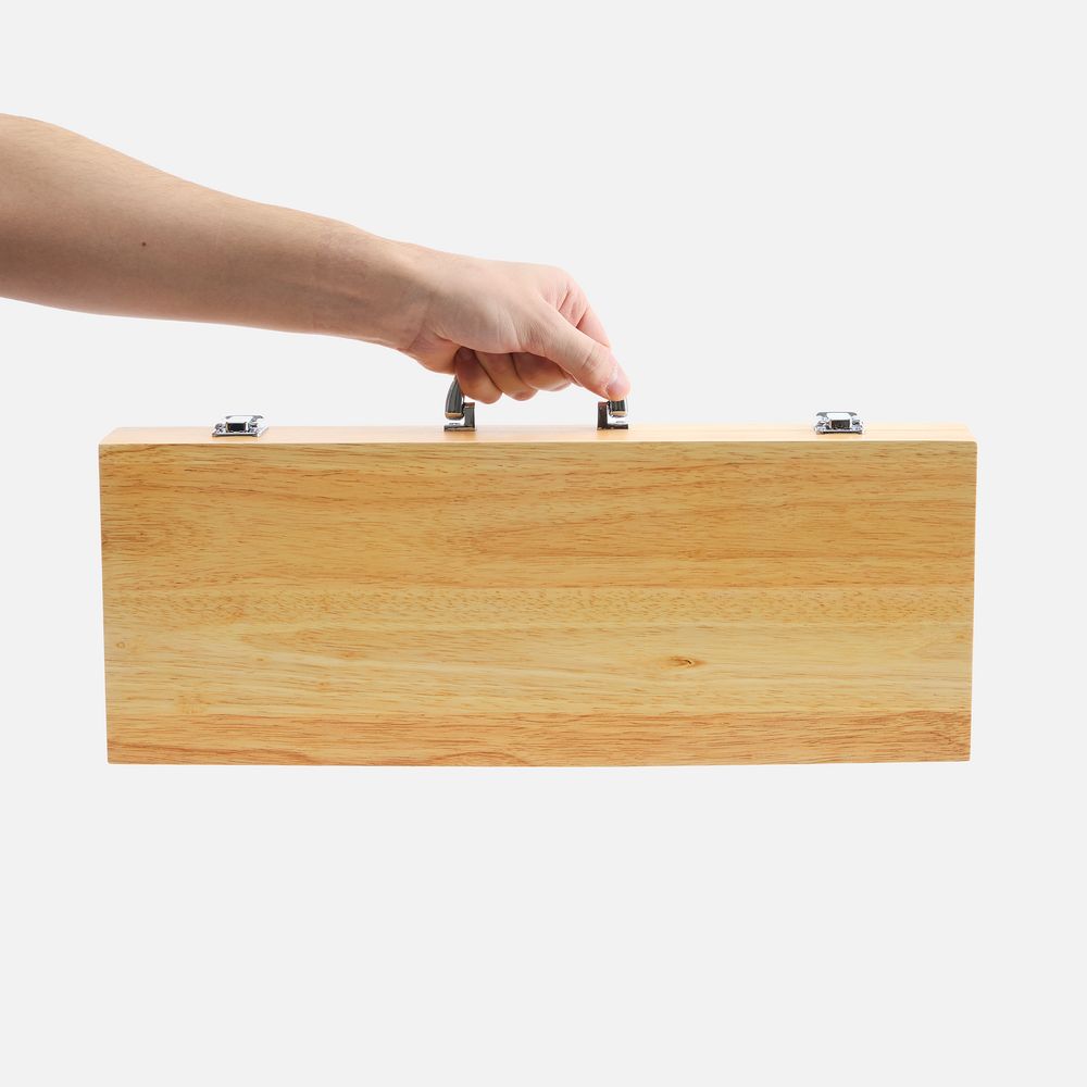 Стильный деревянный кейс не только защищает инструменты при хранении, но и позволяет легко транспортировать набор куда угодно — в загородный дом, ближайший парк или на природу.В набор входят: щипцы, вилка, лопатка и нож.