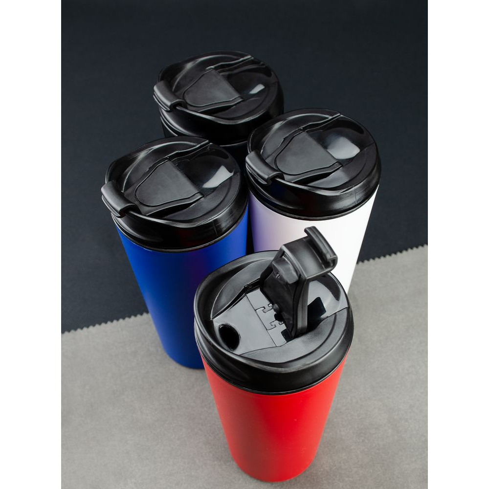 Двухслойная конструкция из пластика внутри и снаружи. Крышка с откидным клапаном для питья.