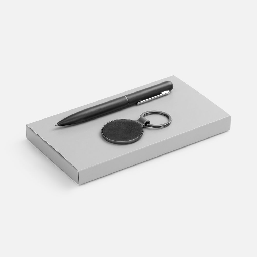 Металлический брелок с элегантной вставкой из искусственной кожи идеально подходит для гравировки и превращает подарок в уникальный символ бренда. Надежная ручка с плавным письмом дополняет комплект —идеальный дуэт для деловых партнеров и клиентов.