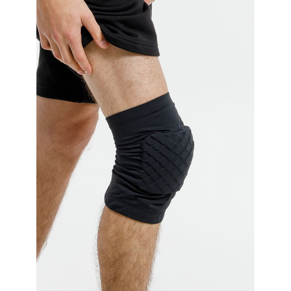 Мягкий вспененный пластик (ЭВА) пружинит, надежно защищая колено от ударов, а сотовая конструкция вставки не препятствует сгибанию ноги в колене.