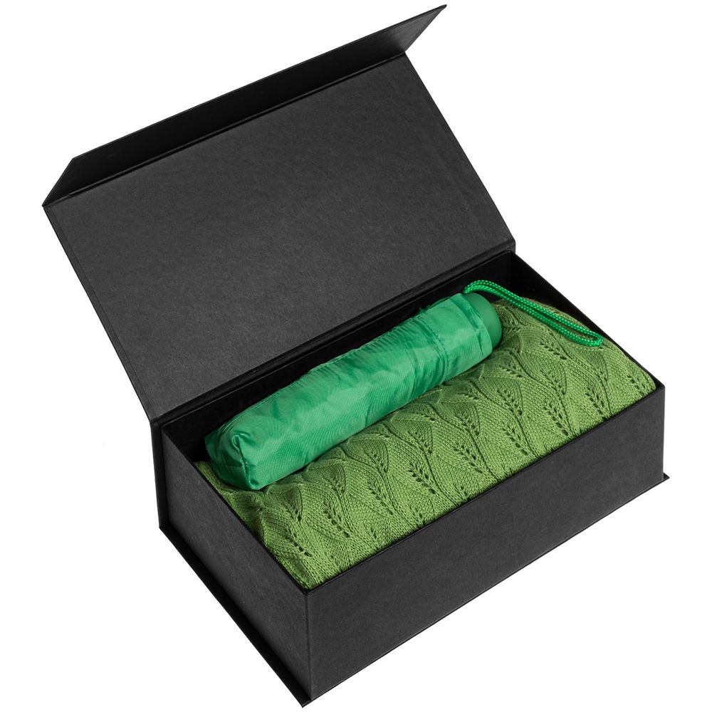 Коробка изготовлена из переплетного картона, кашированного гладкой дизайнерской бумагой Magic, с крышкой на магните.
