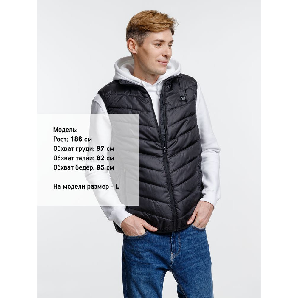 Жилет со встроенным нагревательным элементом из углеродного волокна с девятью зонами нагрева в области спины, шеи и живота. Работает от внешнего аккумулятора (в комплект не входит), подарит ощущение тепла и комфорта в любую погоду.